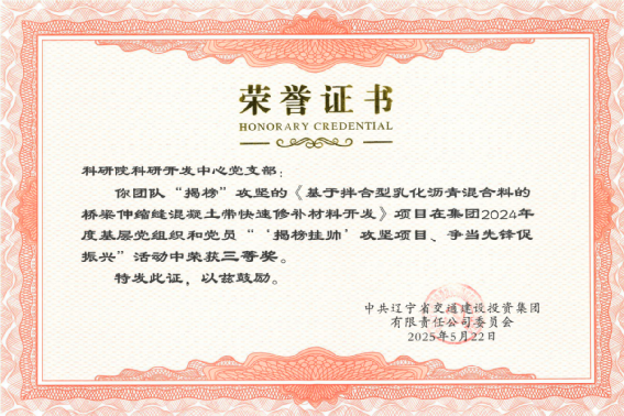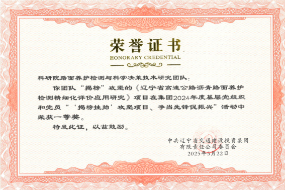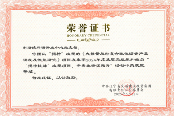 在交投集团2024年度基层党组织和党员“‘揭榜挂帅’攻坚项目、争当先锋促振兴”活动中,科研院立足交通科技攻关前沿,聚焦公路养护、材料研发等关键领域,凭借三项技术创新成果脱颖而出,彰显了党建与科研业务深度融合的强劲动能,为交通基础设施高质量发展注入坚实科技力量。