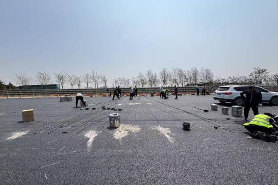 每当施工断面完成,短暂的窗口期便是他们的“冲锋时刻”。高温蒸腾的路面上,他们弯腰俯身、精细操作,既要确保传感器安装精准无误,又要做好密封保护,避免后续施工损伤。在他们眼中,每一颗传感器都是道路健康监测的“眼睛”,每一次精准布设都是对工程质量的郑重承诺,这份对精度的极致追求,正是“匠心精技、崇实拓新”作风的生动诠释。