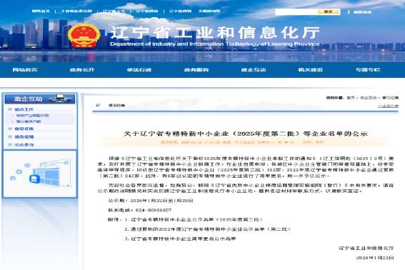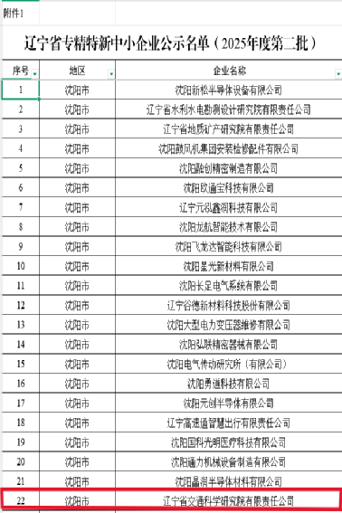 近日,科研院凭借自身在专业领域的技术积累、持续创新能力以及精细化管理体系,顺利通过辽宁省工业与信息化厅认定,荣获辽宁省“专精特新”中小企业称号。