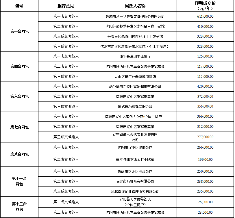 辽宁省高速公路高花、新民和康平等12个服务区餐厅经营招商项目(项目编号:RHZB0320-2025)评审工作于2025年11月20日在辽宁仁合项目管理有限公司会议室结束。现将评审小组推荐的成交候选人名单公示如下: