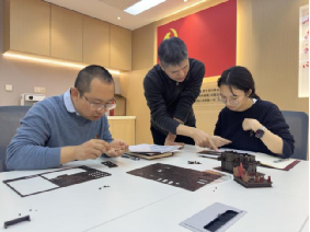 手工创作环节中,党员们围绕中共一大旧址、遵义会议旧址、泸定桥等多个红色主题潜心构思、巧手制作。大家紧扣红色地标特色,细致还原历史场景。制作过程中,党员们相互交流创作技巧,沉浸式感受红色历史的厚重底蕴,让每一件作品都成为承载红色记忆、传递红色基因的鲜活载体。