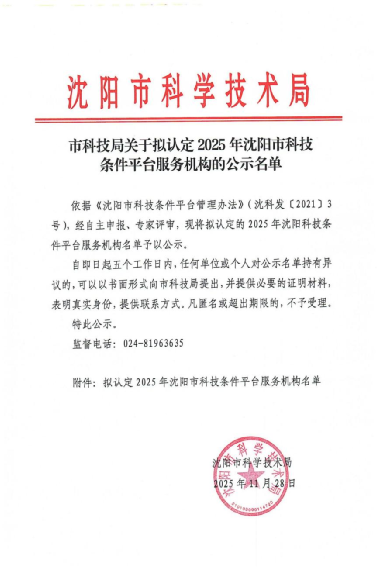 近日,科研院凭借扎实的科技创新能力和完善的研发体系,成功通过两项市级评审,获评为“沈阳市企业技术中心”,并入驻“沈阳市科技条件平台”。